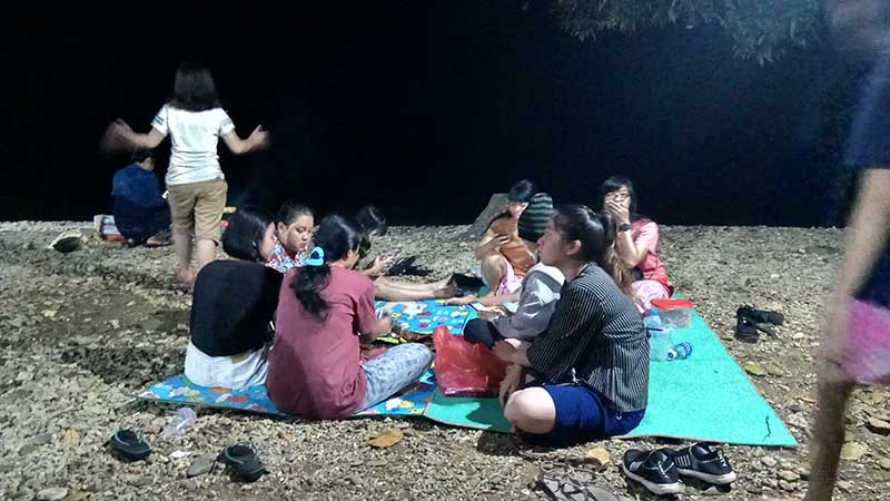 Istirahat sejenak setelah makan, sambil santai menghirup udara segar di tepi laut