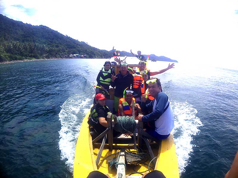 Menggunakan kapal kecil agar bisa langsung menepi tidak jauh dari lokasi terumbu karang, bisa langsung terjun berenang tidak jauh untuk naik dan turun ke atas kapal